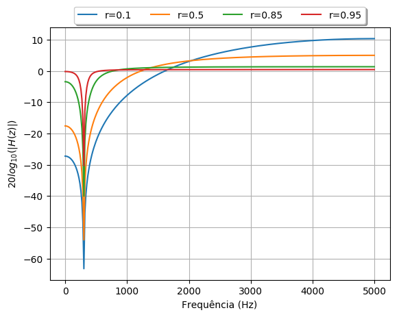 Na Figura 6 a resposta de magnitude do filtro notch é ilustrada para diferentes valores de