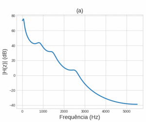. Em seguida, apliquei um preditor linear de segunda ordem ao sinal filtrado e, com os coeficientes estimados pelo preditor, apliquei filtragem inversa no sinal original para remover, assim, a influência da