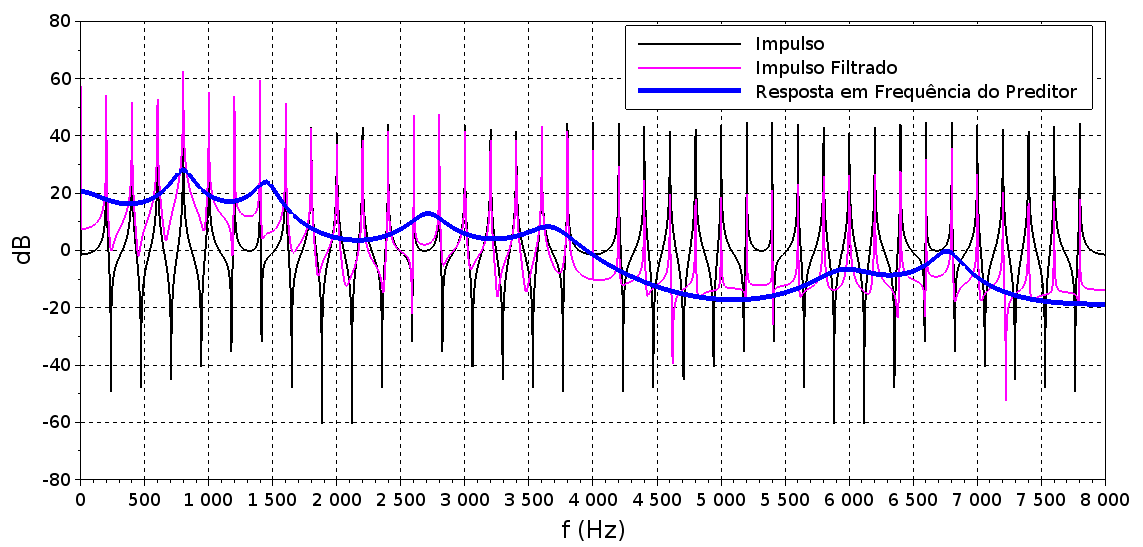 qualquer, é a comparação da resposta em frequência estimada com o espectro da transformada discreta de Fourier. Uma comparação entre o espectro da DFT e a resposta em frequência para