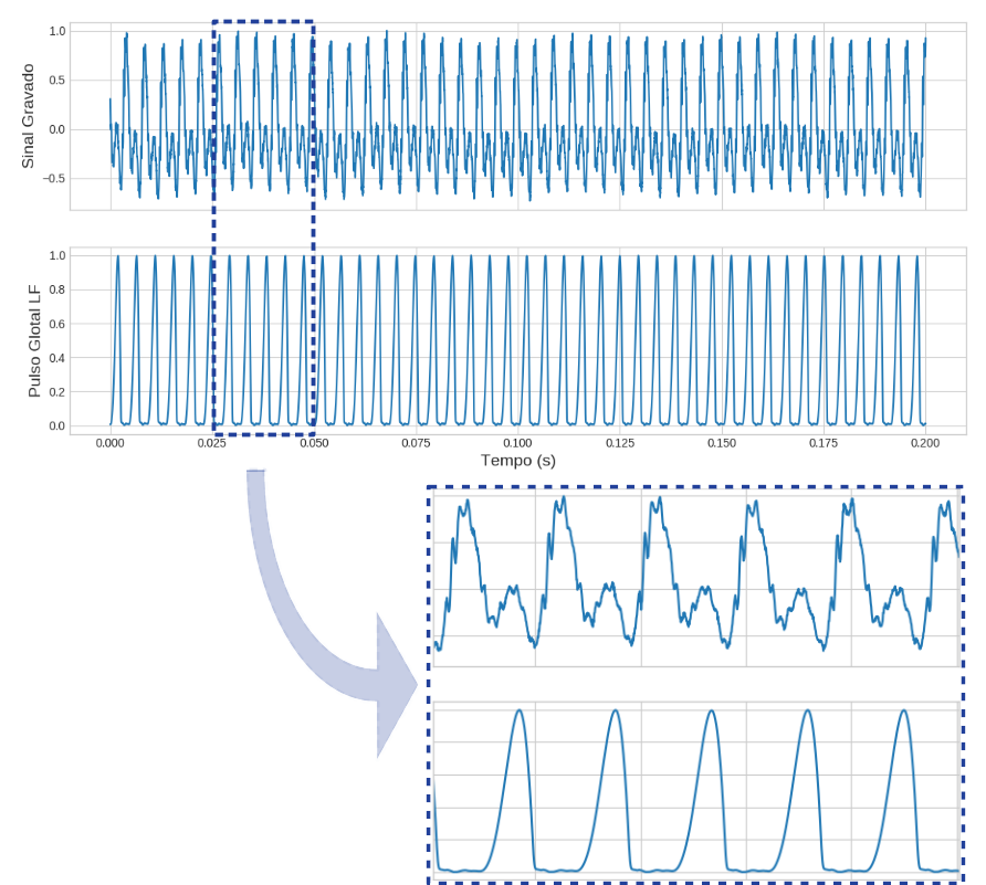 Ora, com base no que mencionei anteriormente, primeiramente é necessário ter um conjunto de amostras (vulgo base de dados) de vozes sintetizadas, com seus respectivos pulsos glotais, ou vozes naturais, acompanhadas de alguma referência para a comparação. Felizmente, neste ano, uma base de dados, denominada OPENGLOT, foi disponibilizada e publicada por Alku et al. [2]2, e encontrada por Magno devido ao acaso3.