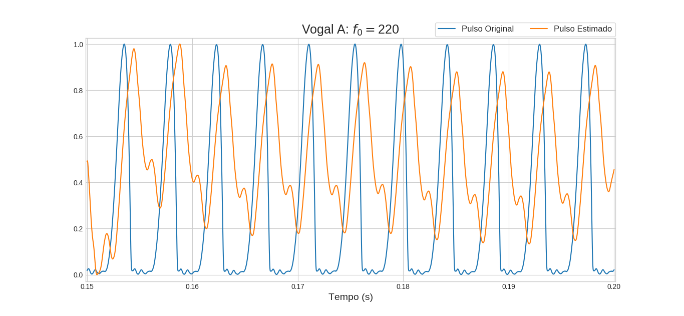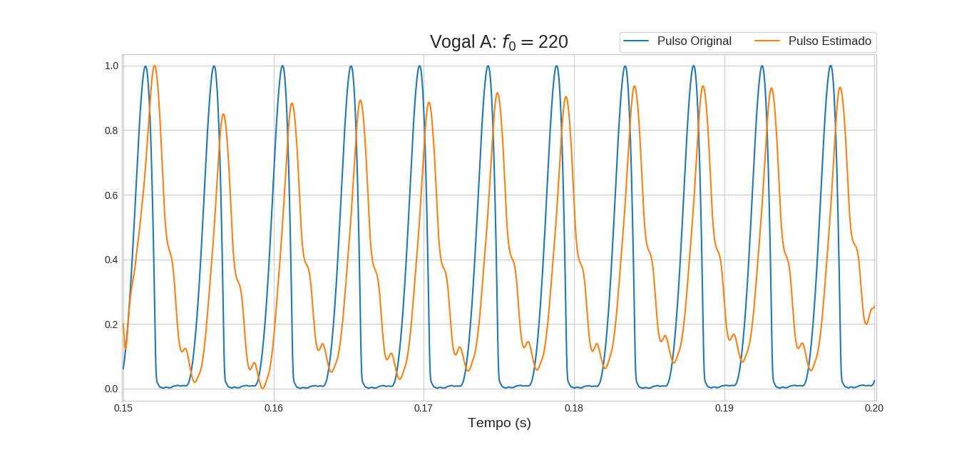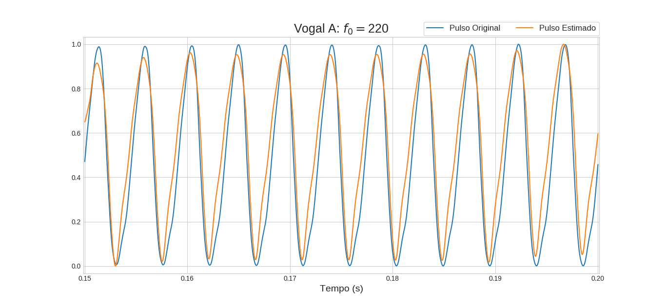 Nos exemplos do repositório 2 e do repositório 3 é possível observar a ocorrência de uma defasagem temporal em relação ao sinal real. Ora, a defasagem temporal poderia ser prevista, tendo em vista que tanto no modelo mecânico-acústico como no trato vocal impresso as oscilações glotais percorrem um tubo (com comprimento em torno de 15.5cm para tratos vocais femininos e 17.5cm para tratos vocais masculinos) de acordo com a velocidade do som.